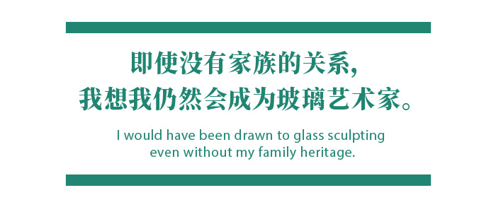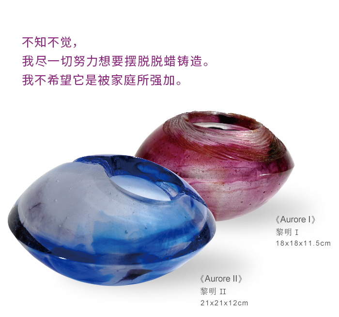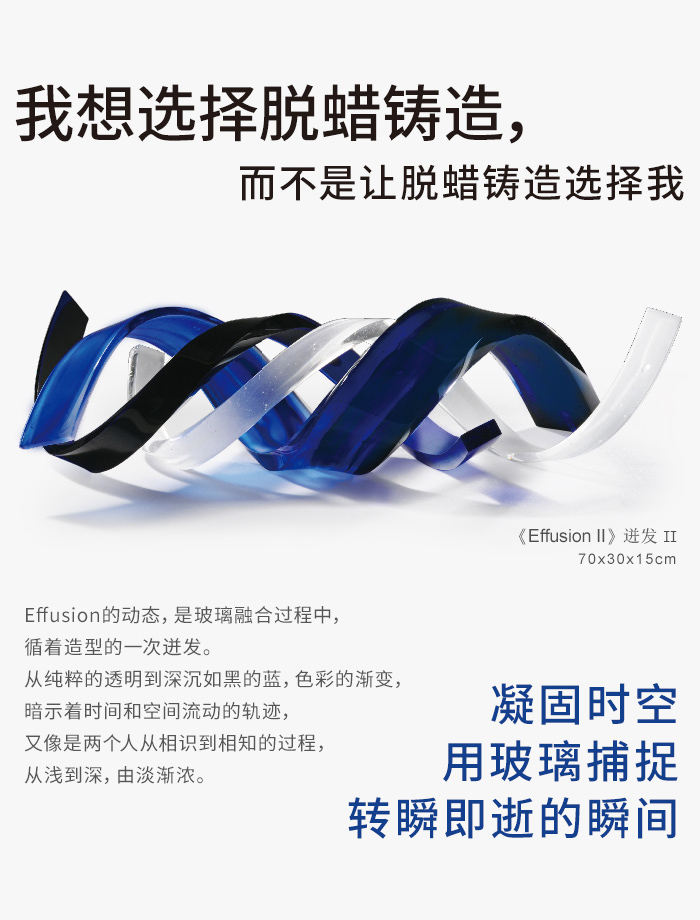 脱蜡铸造法是包含着不同工艺和艺术技术的综合体,需要大量的雕塑,玻璃,铸造,成型,抛光、温度控制、色彩方面的专业知识,还需要有关玻璃化学和物理的知识。每一件作品里的每一个细节、每一颗气泡,就像创作者精心布局的一个个音符,透过数理般的理性组合,合奏出优雅的旋律。