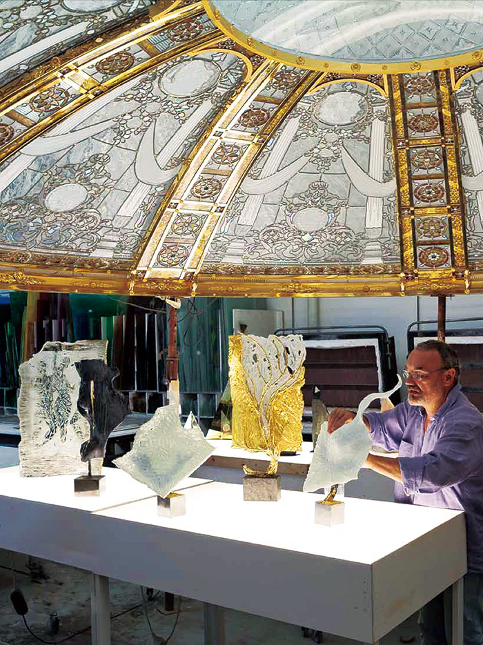 埃里克·邦特是一位成功的当代玻璃艺术家,最为世人所知,是他的穹顶与花窗玻璃系列。邦特旺盛的创造力,使他拥有化梦想为现实的魔力。极薄的玻璃即是他的画布,多变的色彩,奢华的图案,对玻璃的把控,对光的理解;艺术与实用的完美契合,在世界各处均带来惊艳赞叹。对欧洲传统玻璃工艺的自信传承,个人的想象力与毅力,对团队的领导力与感染力。这是成就一件巨型作品的必备元素。集合这些魅力点的邦特,毫无疑问是法国当代玻璃艺术界的代表人物。