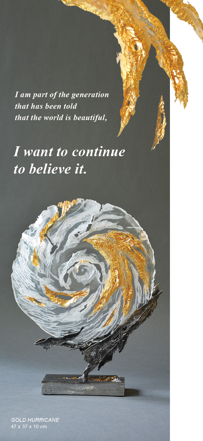 埃里克·邦特在作品中,频繁地使用金色。在他的意志下,金与玻璃的关系呈现不同的效果。金色蜿蜒于玻璃之上,可以是一种彰显,也可以渐渐堙没;它是光的媒介,或干脆成为光源本身。金色,以无与伦比的存在感,渗透其中,相映枯荣。