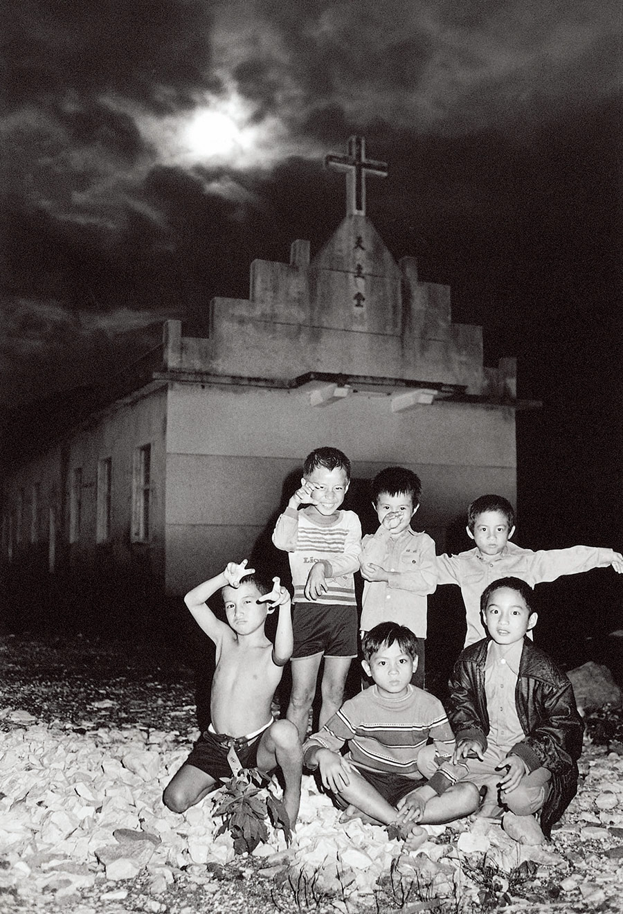 这是一个story telling,阮义忠经营了一个非常戏剧的场面,这些小孩每一个的表演非常有趣,他们愿意面对摄影机,知道自己在表演给摄影机看,然后他选的舞台 ( 后面是天主教堂 ) 就形成某一种诡异的氛围。
