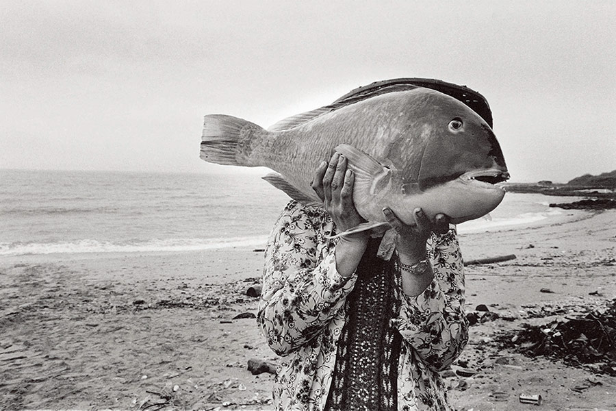 岛屿北端的水埯村民生活环境比较艰苦,有句澎湖谚语“四代无尪,不通嫁水埯人”(四代嫁不了,也不嫁给水埯人)。几条小舢板缓缓靠岸,妇人们冲上前去协助舢板抢滩,无奈渔获多是不肥不美、装不满箩筐的小鱼。其中唯一的珍奇便是这尾色彩艳丽、体型硕大的鹦鹉鱼。见一位妇人像抱婴儿般地把它兜在怀里,我赶紧举起相机,谁知妇人的动作比我更快,马上就把鱼捧上来挡住了脸:“拍鱼就好了,不要拍我!”所以说,这帧充满超现实意境的作品,导演是她,我只不过按了快门。