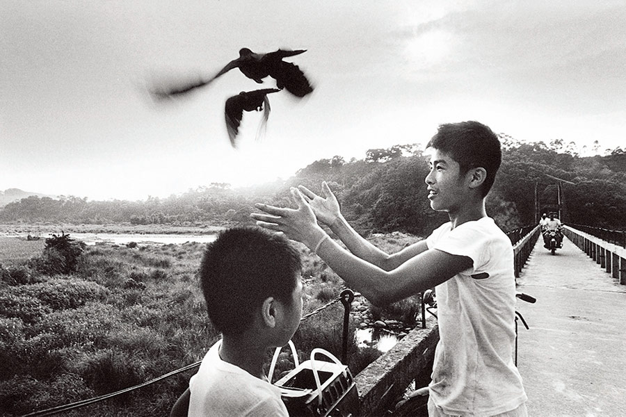 这张孩童嬉戏的照片,让黄春明想起从前,人们在院子乘凉、聊天、表演的淳朴时光。“农业社会小孩没鞋子穿,贫穷、教育不普及,但犯罪的没几人,今天教育这么普及,犯罪却变得普遍,人文摄影展唤醒我们人文很重要。”